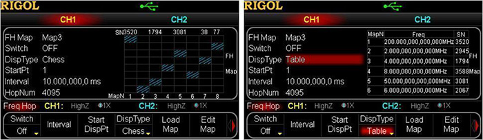 支持跳频信号输出(选件),高达80 ns间隔的跳频速度,跳频图案任意编辑
