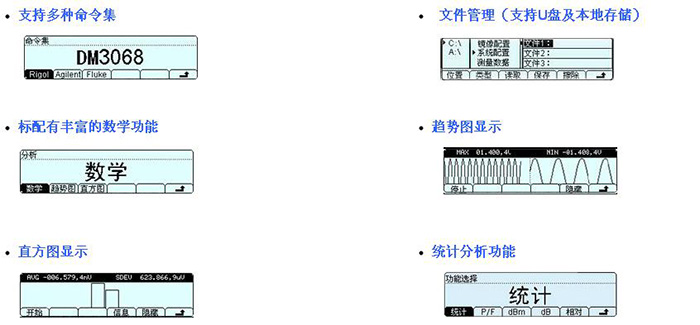 DM3068数字万用表是一款针对高精度、多功能、自动测量的用户需求而设计的产品,集自动测量、多种数学变换和任意传感器测量等功能于一身。