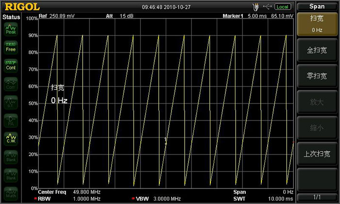 通過(guò)“零掃寬”功能解調(diào)AM信號(hào),觀察調(diào)制信號(hào)的波形
