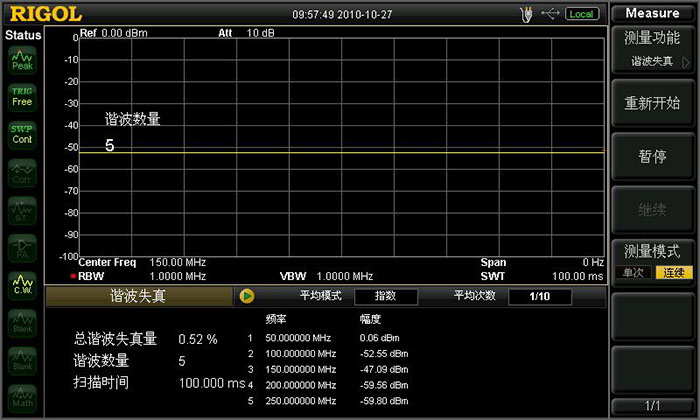 通過(guò)選配的諧波失真測(cè)量功能直接測(cè)得被測(cè)信號(hào)的各諧波失真及總諧波失真
