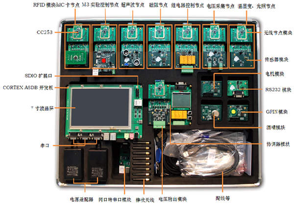 • 将复杂的无线传感节点结构有机的打散开,让用户直观的了解到无线节点的组成单元。方便老师教学时有针对性的讲解每个单元的功能及实现,让学生更好的理解。